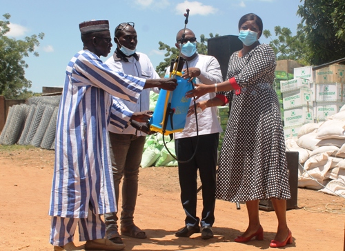 En rappel cet appui s’inscrit dans le cadre de la mise en œuvre du projet renforcement de l’entrepreneuriat agricole des producteurs-trices du village de Salogo et du projet de renforcement des moyens d’existence des populations du Ganzourgou dont la mise en œuvre s’étend de 2021 à 2024. C’est un appui constitué de 40.5 tonnes d’engrais et de compost enrichi au trichodrema, de 600 tubes PCV, de 29 motopompes, plus d’une tonne de semence améliorée, de 190 pulvérisateurs, de 160 rouleaux de grillages, des bottes, de binettes, etc. D’un coût global évalué à 52 021 000 francs CFA, ce soutien permettra l’aménagement de 32 ha de périmètres maraîchers au profit de 338 producteurs maraîchers repartis dans les 8 communes de la province de Ganzourgou.